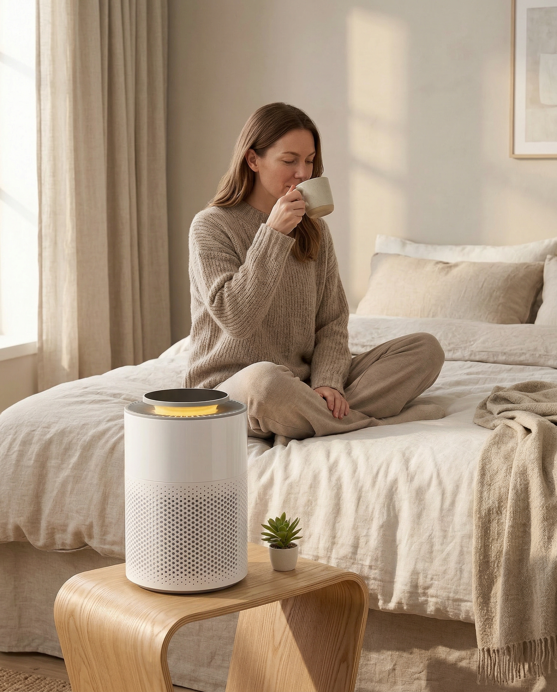 Med sit kompakte design og lydsvage drift passer Ease™ Brease Purifier perfekt til soveværelser, stuer, kontorer eller andre mindre rum i hjemmet.